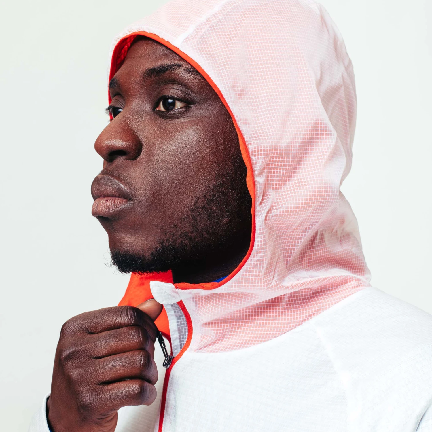 The exceptionally low overall weight combined with the low noise materials makes this effortlessly comfortable and you’ll barely notice you’re wearing an outer layer. Hidden reflective details are set under the transparent outer, visible only when hit by light. There’s two zipped side pockets for storing running gloves or valuables and a close fitting hood for optimum visibility in wet and windy conditions.