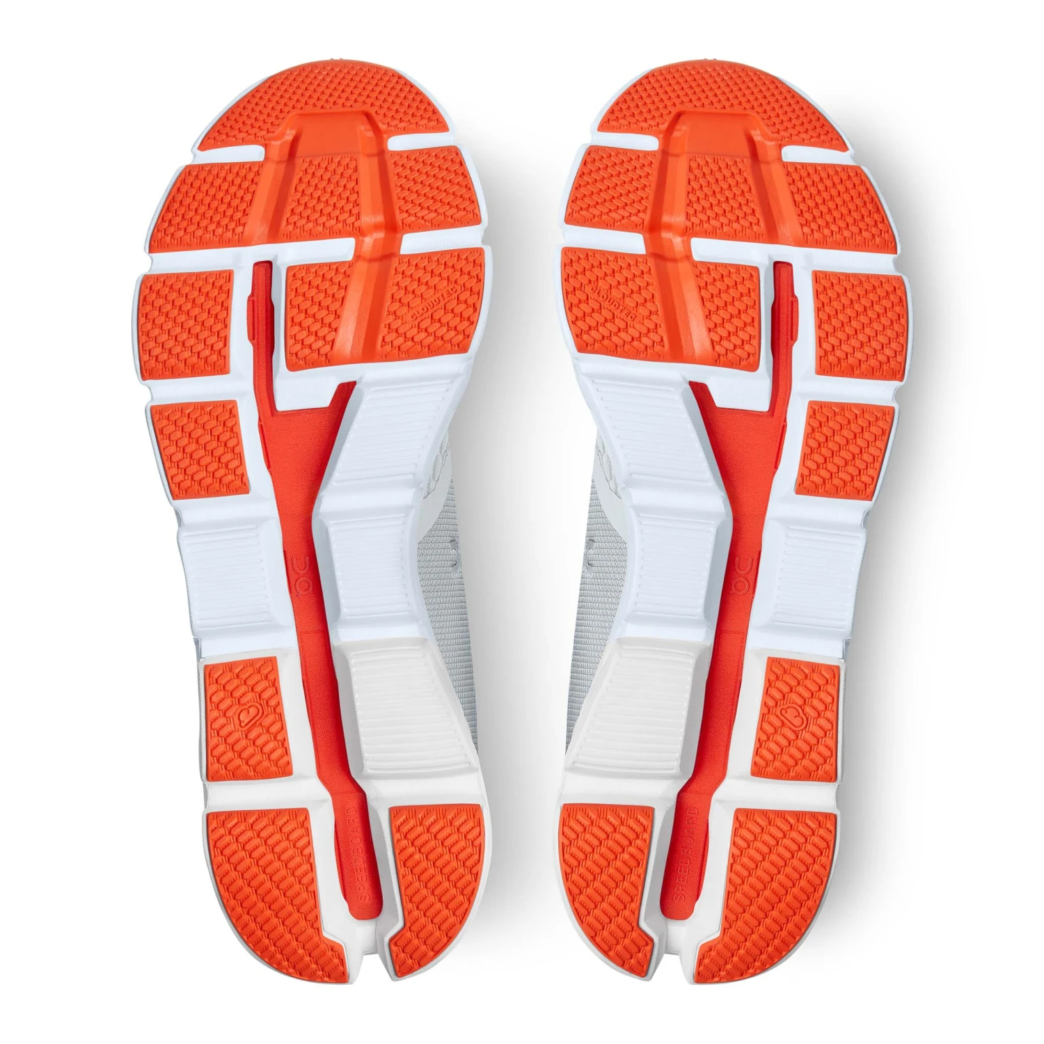 Advice for Road Runners: The Cloudflyer from On Running in the Glacier/Flame colourway delivers stability and control to your runs in a lightweight and non-intrusive manner. Helion superfoam makes up the full midsole of the shoe. This provides lots of cushioning plus energy return and will feel softer than the previous model. The heel base and cloud cushioning is also wider for more stability. Despite this being well cushioned, the Speedboard delivers a snappy feel. It will therefore feel good while picking up the pace.