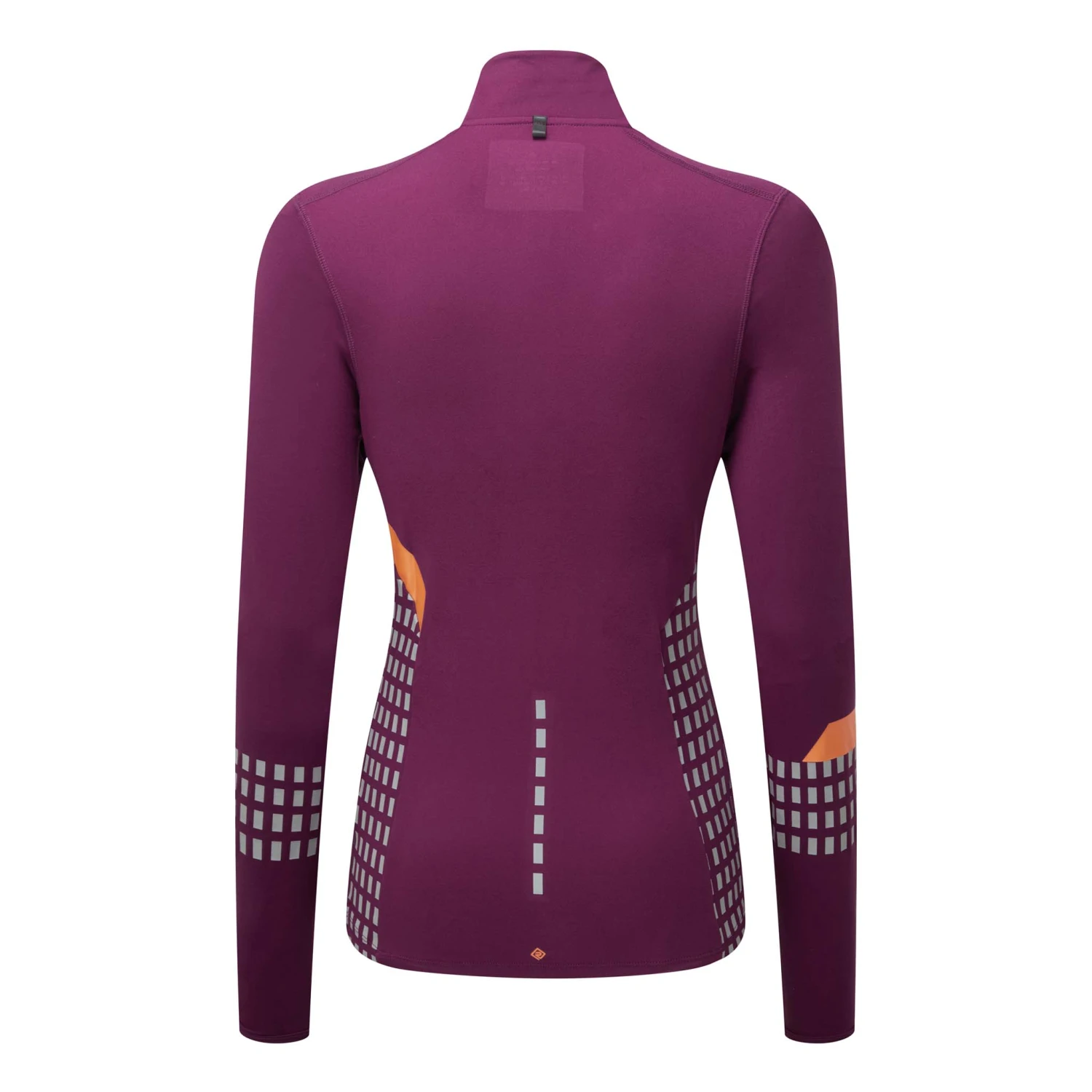 The Ronhill Women’s Tech Afterhours 1/2 Zip Running Tee in the Grape/Mango Reflect colourway is made dark. The Reflective strips placed on both the front and rear keep you seen at night or early in the morning.